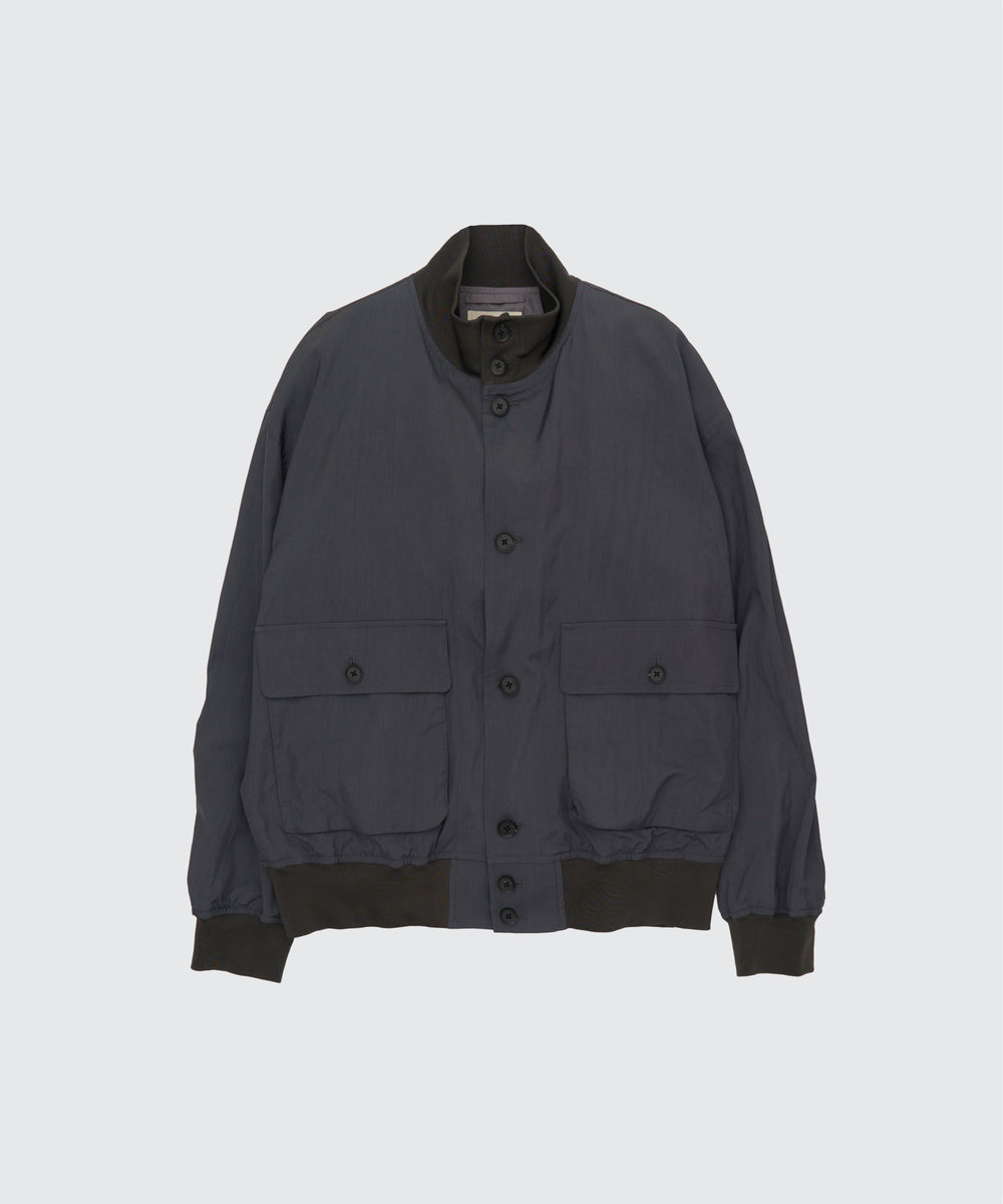 ブルゾンは古着のドライビングブルゾンをベースにしつつ、素材感で上品な印象に。ボディに合わせてリブはオリジナルで編み立て、水牛ボタンのフロントでさりげない重厚感をプラスしました。ゆったりとしたサイズ感で、レイヤードしやすく、秋のアウターとしておすすめです。