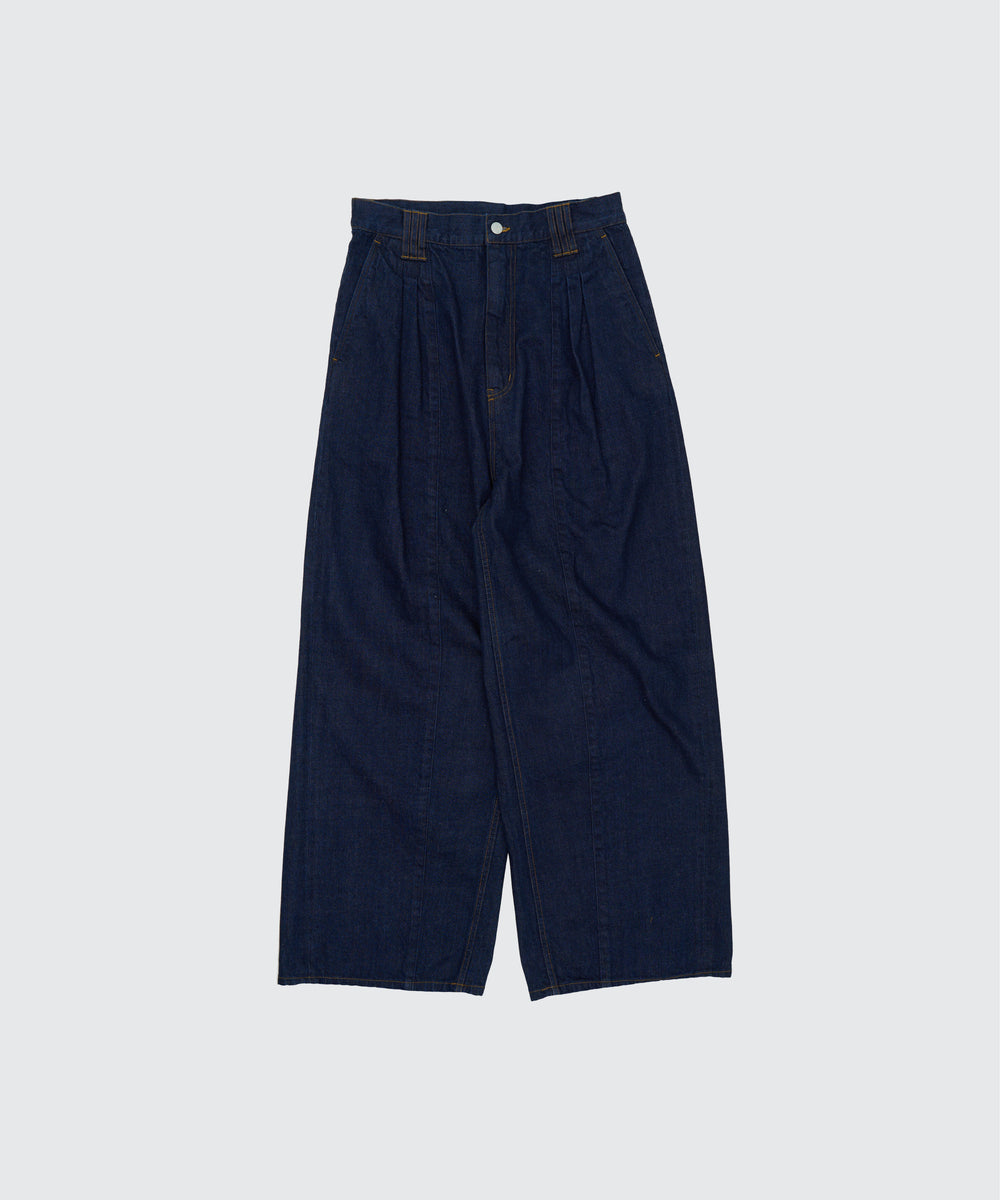 ワイドパンツは、3タック・3ループのブランド定番パンツに、ベイカーパンツのディテールを盛り込みました。膝から裾にかけての立体裁断により構築的に仕上げ、わずかにテーパードをかけたワイドシルエットに。ウエストはサイドタブで調整可能です。