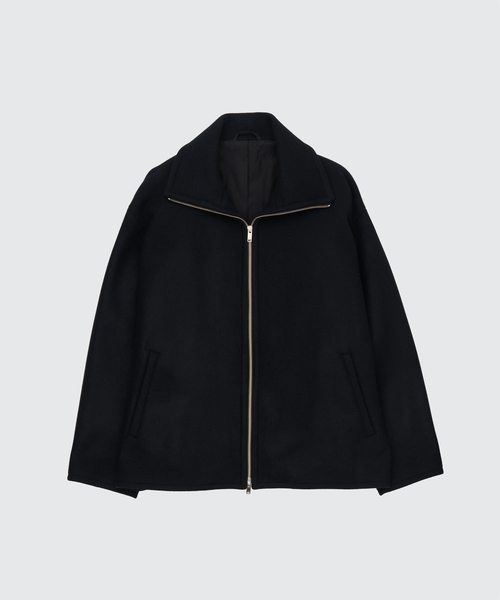 SUPER140'sウールメルトンを使用したジップブルゾン。SUPER140'sウールは、繊維が非常に細く、チクチク感が少なく、カシミヤに匹敵する滑らかな肌触りが特徴的です。重厚感はありながらも軽やかな素材感で、ストレスなくご着用いただけます。24FWモデルをベースに、袖下のファスナーや後ろ身頃のタブ・ボタンを排除し、よりミニマルでクリーンな印象にアップデート。袖口と裾にはドットボタンを配し、シルエットの調整が可能な仕様に仕上げています。首元は2WAY仕様で、ジップを閉じればスタンドカラーに、開ければ大きめのオープンカラーとしても着用でき、スタイリングに幅をもたせています。