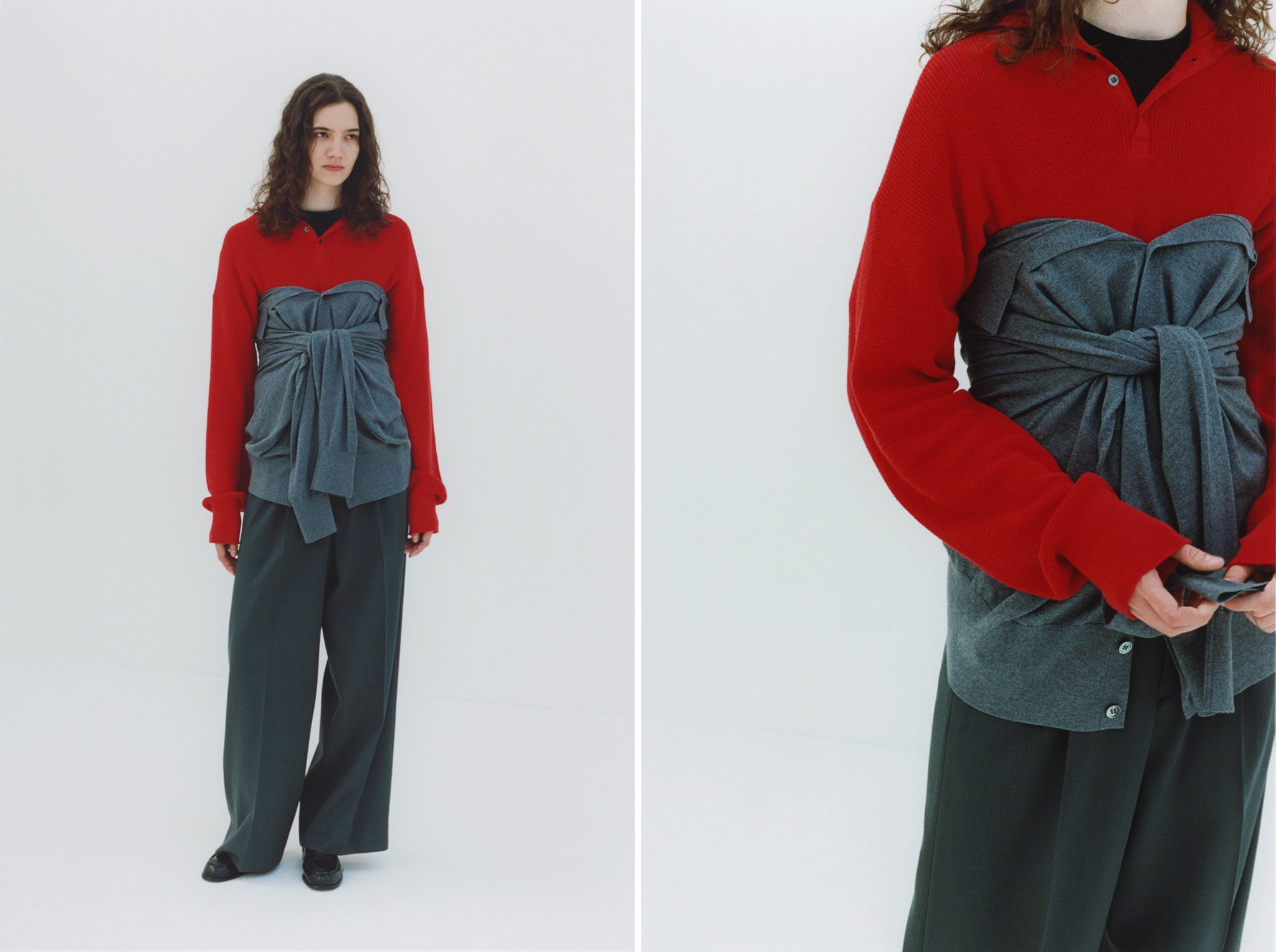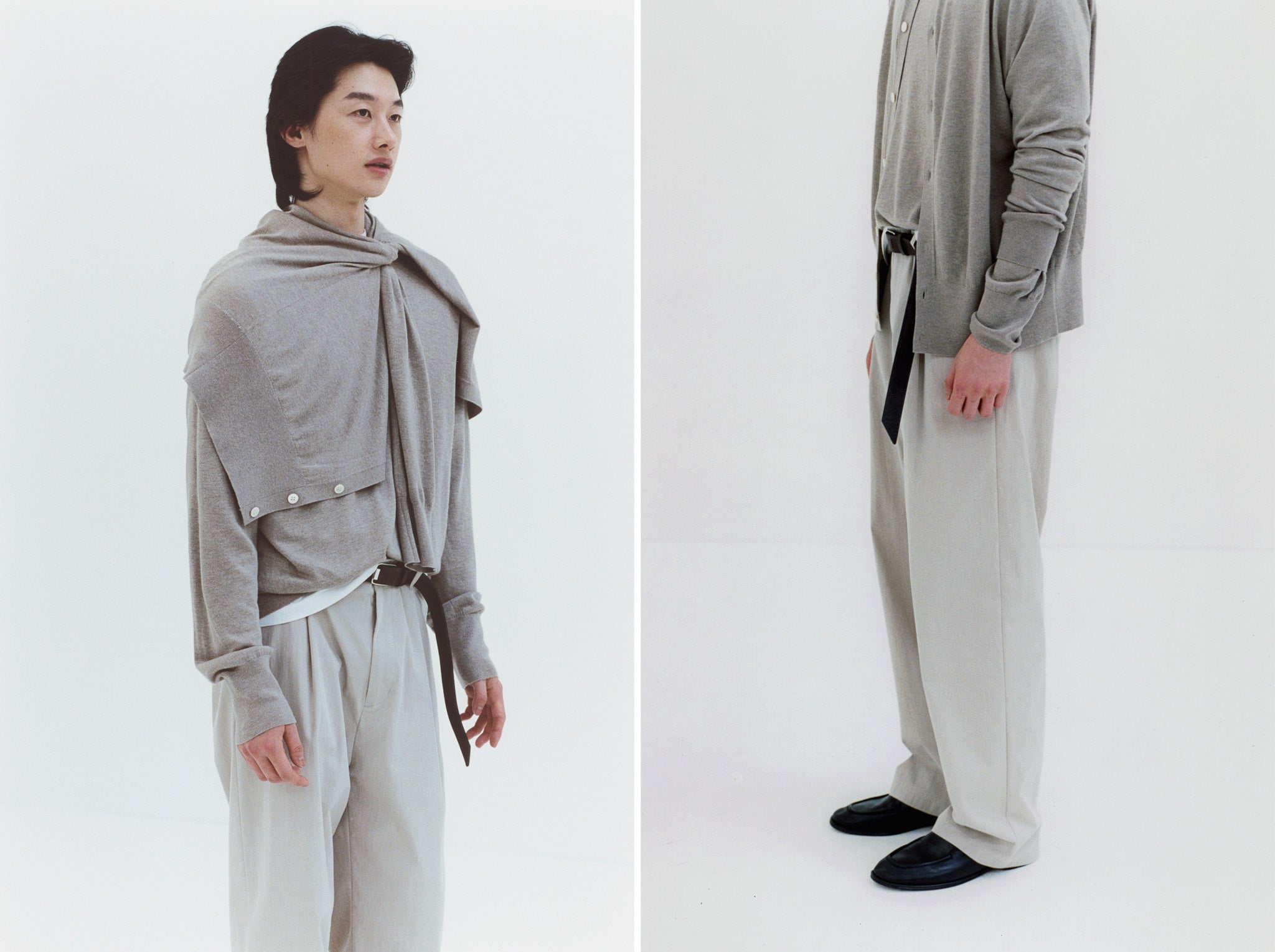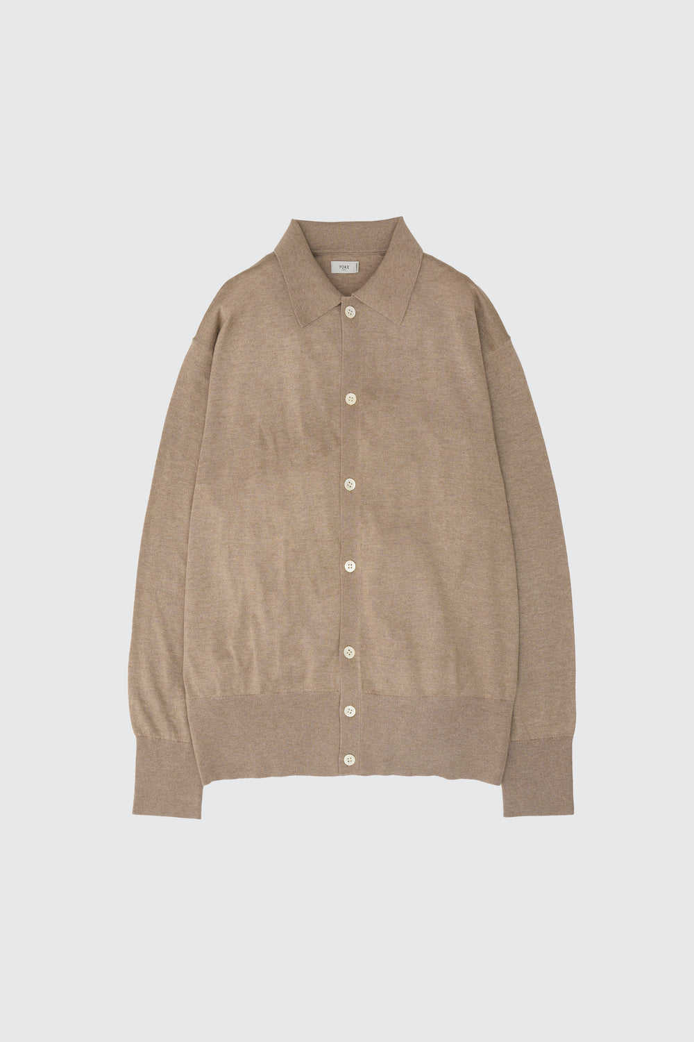 16Gのシルクカシミア糸を使用し、ハイゲージで編み上げたクルーネックセーターとニットシャツ。上質な素材をあえて甘めに編むことで、軽やかさと清涼感、そして滑らかな肌触りを実現しています。