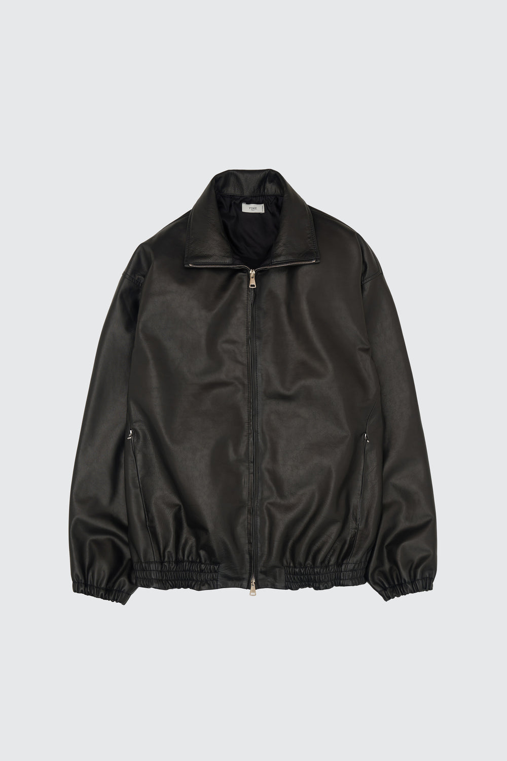 カーフレザーを使用したトラックジャケット。昨シーズンから素材をアップデートし、生後6か月以内の仔牛革を採用しています。成牛革に比べ、部位差や傷が少なく、薄く柔らかな質感が特徴的。染色性にも優れ、毛穴が小さくきめ細かな表情と、上品な光沢を備えています。ゆったりとした身幅に対し、裾と袖口はゴムで絞り、メリハリのあるシルエットに。フロントにはイタリア〈Raccagni〉社のダブルジップを採用しました。