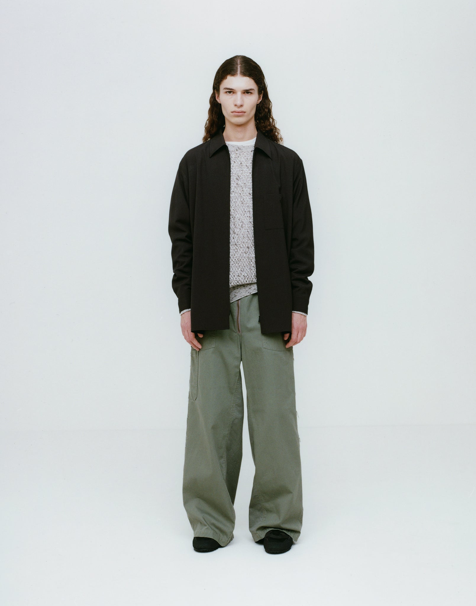 ジップシャツは、フロントにコイルファスナーを使用。羽織としてはもちろん、途中で留めることで深めのVネックやスキッパーのような着こなしも楽しめます。