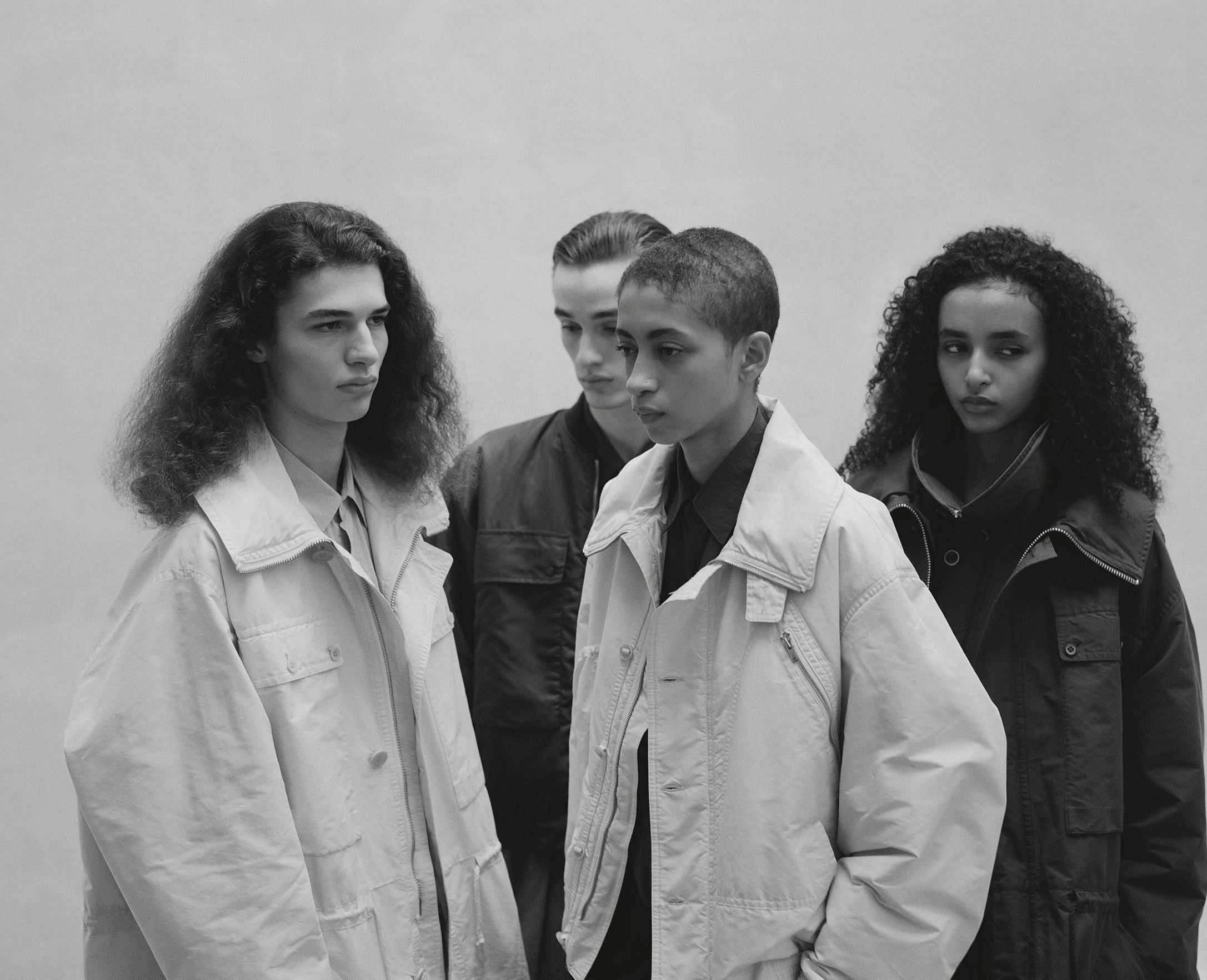 今回のコラボレーションに際して、本国から送って頂いた80年代のアーカイブサンプルの中から6型を厳選。YOKEならではの素材やシルエットで再構築しました。リサイクルナイロン、リサイクルポリエステル、オーガニックコットンを採用し、「KATHARINE HAMNETT」の根底にある「エシカル」の理念を反映しています。