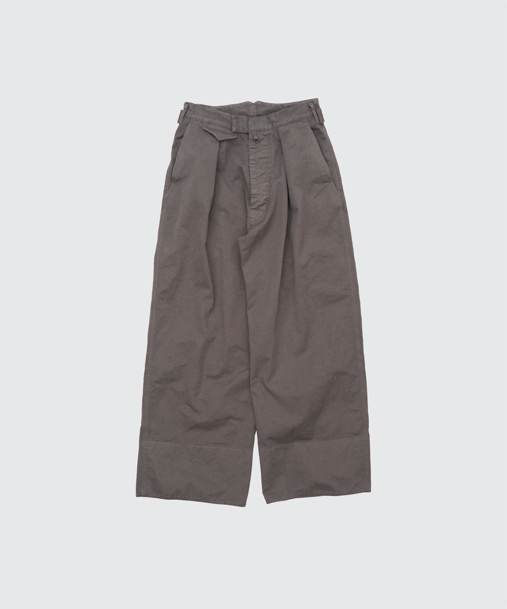フラップ付きのコインポケットや非対称のバックポケットなど、ディテールを豊富に盛り込まれたワイドレッグパンツ。オリジナルのテーパードシルエットからワイドバギーシルエットへと変更しました。両脇のタブでウエストのアジャストが可能です。素材には超長綿のオーガニックチノを使用。製品染めによりステッチ部分にパッカリングが生まれ、表情豊かな仕上がりに。