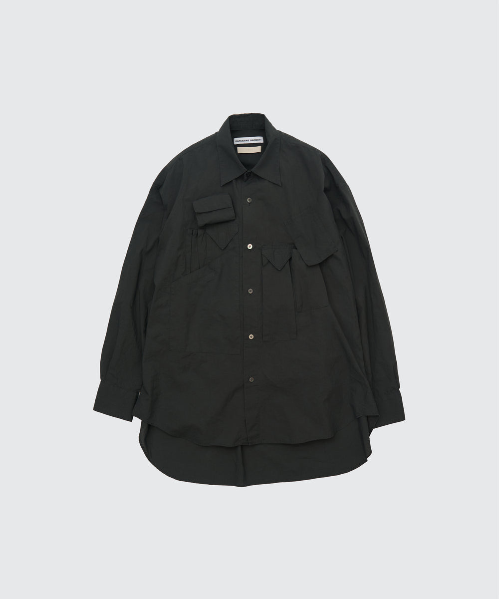 1982年のリリース以降、"KATHARINE HAMNETT" のシグネチャーアイテムとなっているマルチポケットシャツ。複雑に配置されたポケットとオーバーシルエットが特徴的。GOTS 認証の超長綿オーガニックコットンローンを使用し、特殊な柔軟加工を施すことで、独特の洗い感と柔らかさを持たせました。