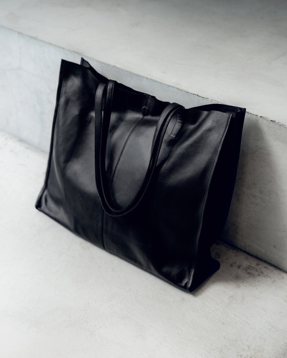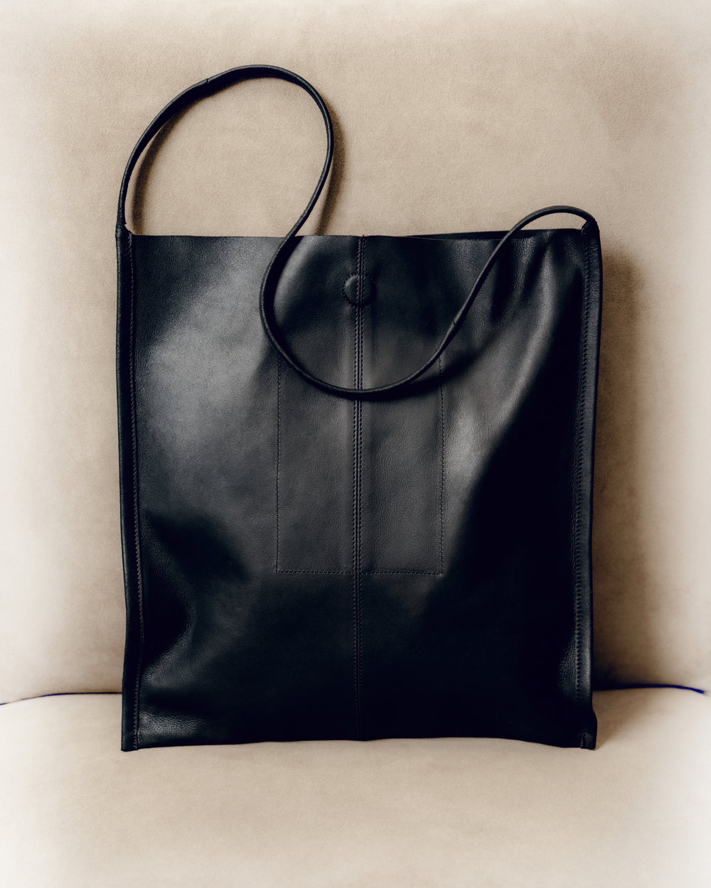 今回のコラボレーションでは、YOKE AOYAMAのオリジナルショッピングバッグを着想源に、「Morphée」定番の柔らかなゴートレザーで再現し、様々なシーンにフィットするレザーバッグに仕上げました。