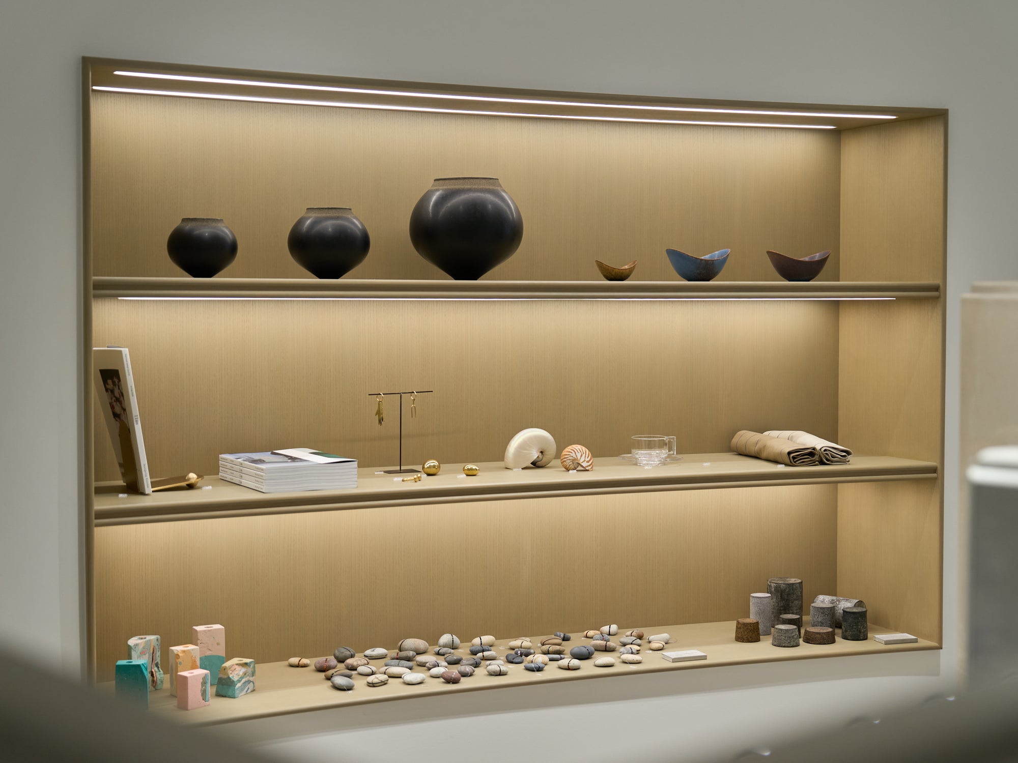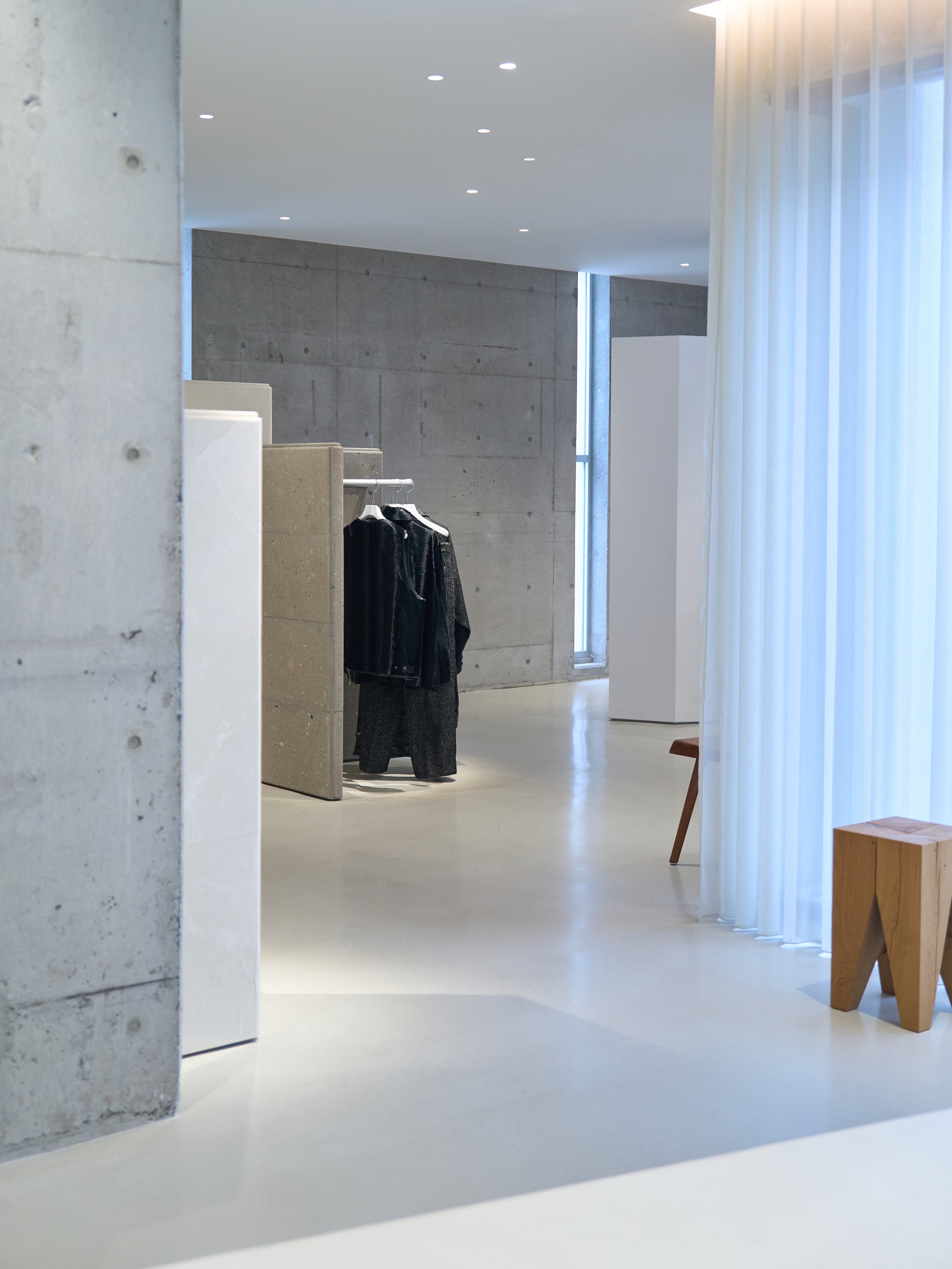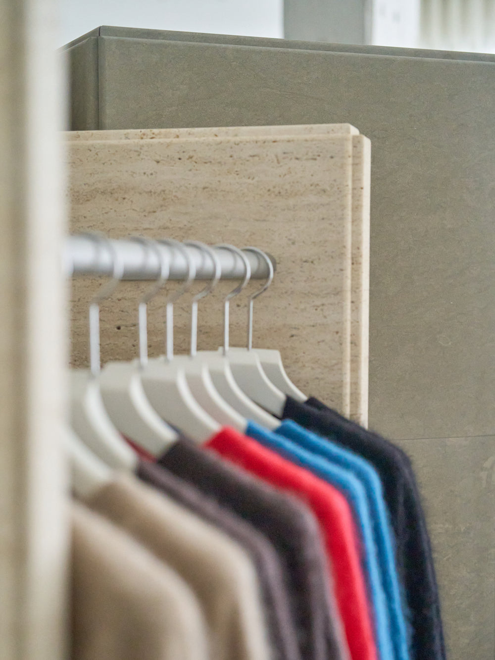 The hangers racks in the store are made of four different types of marble.