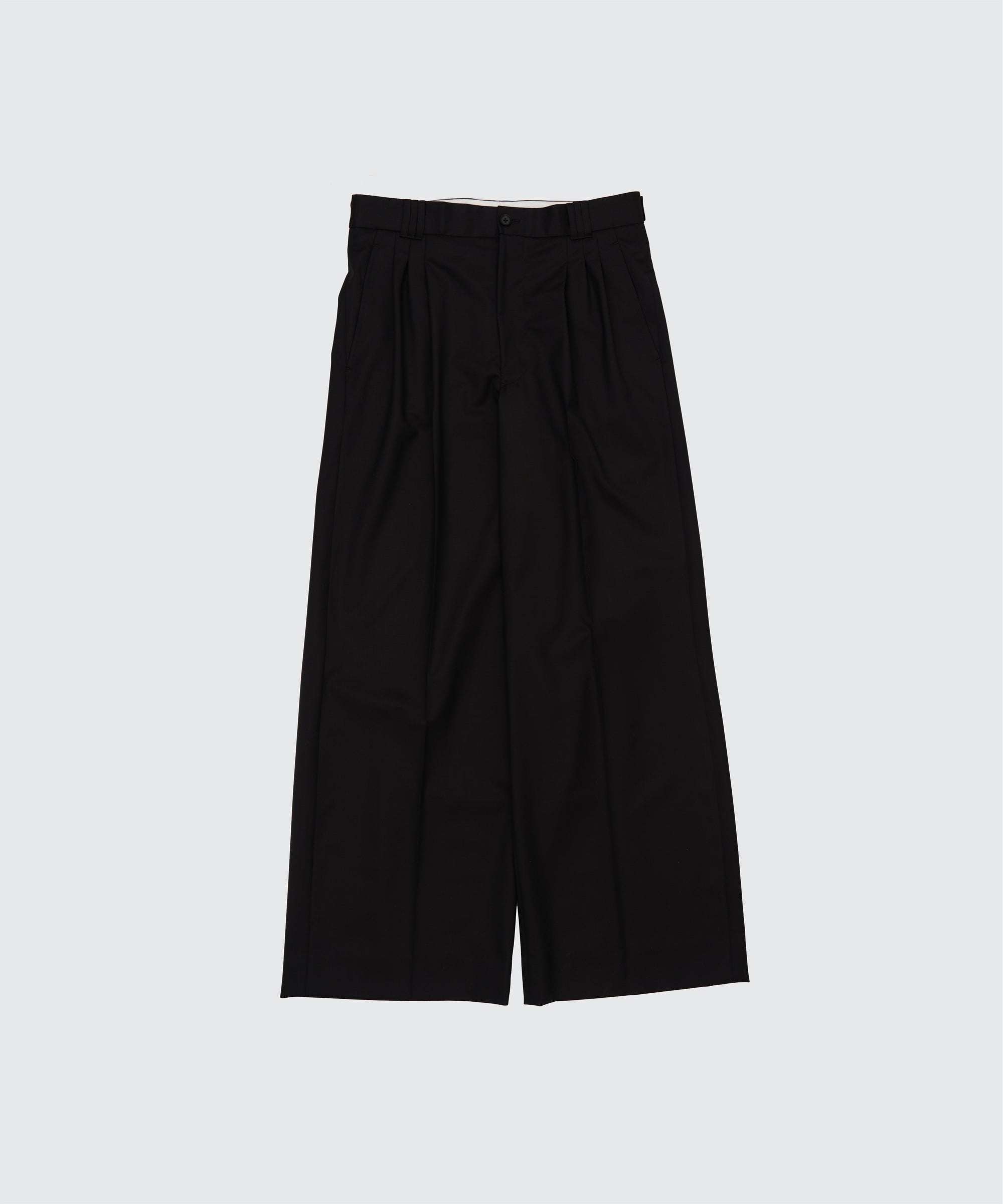 植物由来の人工タンパク質「Brewed Protain™」とウー ルをブレンドした高品質なトロピカル生地を使用した定番の 3 タックワイドトラウザーズ。